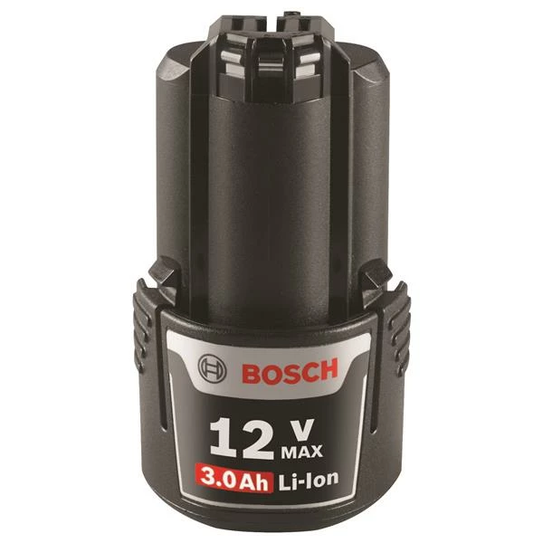 The Bosch 12 V Max Lithium-Ion Battery is the most compact 3.0 Ah battery in its class. It is the same size as a 2.0 Ah battery but with up to 50% more runtime. It is 100% compatible with all Bosch 12 V Max Lithium-ion tools.
