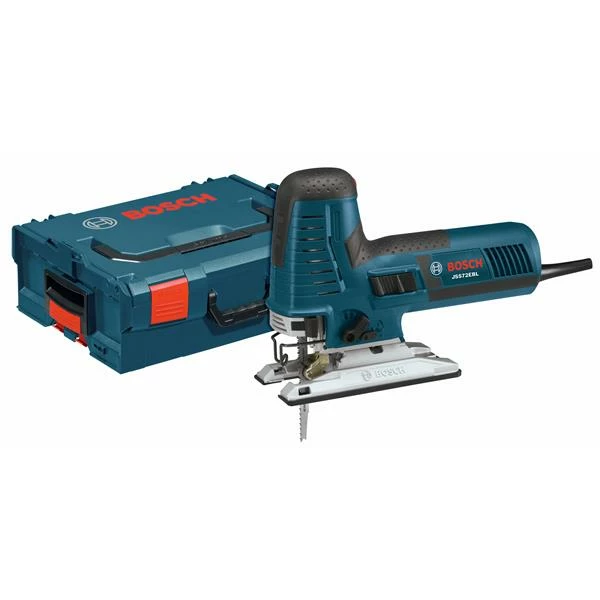 The Bosch barrel-grip jig saw kit provides a tool with an upgraded upfront soft-grip area; it has the smallest circumference in its class. Thanks to the innovative Precision Control™ II double-roller system, it has outstanding cut accuracy, which minimizes blade deflection. Woodworkers and kitchen and bath installers are among the many user groups will appreciate the best-in-class 7.2 Amp motor and variable-speed control. Built with an aluminum gearbox with an insulated cover, this jig saw comes with a counterbalancing mechanism for low vibration and constant response circuitry for consistent speed under load. It has a large die-cast aluminum footplate with tool-free adjustment for fast and easy bevel adjustments. It also has LED lighting and a dust blower for max cut-line visibility and a toolless blade-change system.