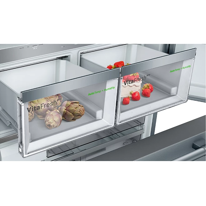 | Refrigerator | 5 glass shelves (4 adjustable), 6 door bins (3 with gallon storage), FlexBar™, 2 VitaFreshPro™ drawers |