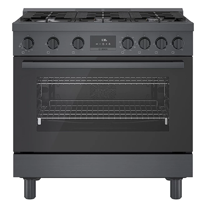 Bosch Dual Fuel Freestanding Range – 800 Series – 6 Burners – 36-in – Black Stainless Steel