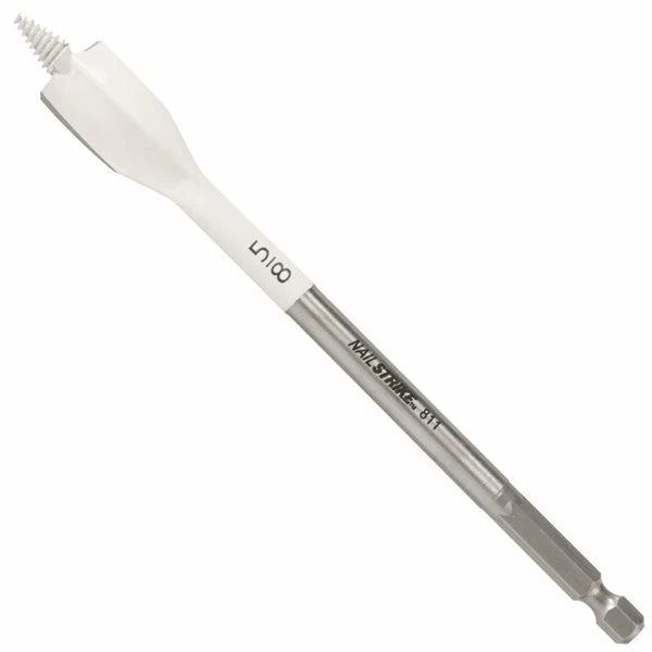 Bosch Nail Strike Wood-Boring Bits are the first wood-boring bits to power through nail-embedded wood. The bit features reamer edges made of tough, reinforced steel that cut through up to 30 nails. Each bit has a fully threaded cone tip that pulls it through the wood, offering best-in-class speed through 2x4s. These bits are ideal for boring clean holes through wood fast to run conduit or pipe. The contoured paddle design also enhances chip removal, contributing to the fast performance. The hex shank with power groove reduces bit slippage in the drill and makes it suitable for use with a variety of drill types, including impact drills. These bits should not be used in a drill press and are not intended for counter boring or doweling.