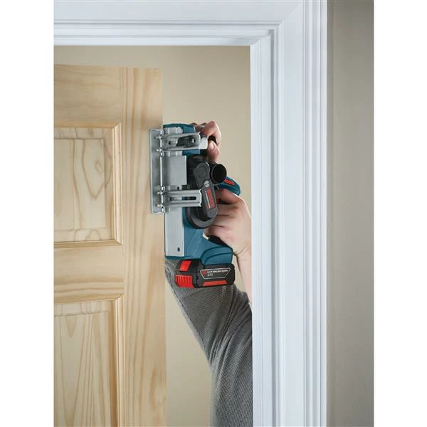 The Bosch planer is great for fast stock removal and leaves a smooth finish. This planer is ideal for trimming doors, and because it is cordless, it eliminates the possibility of running out of cord in the middle of a planing pass. The electronically counterbalanced single-blade system automatically positions the blade at the ideal cutting angle, and it eliminates uneven planing caused by misaligned blades. The planer comes with a guide fence that can be mounted to either side of the tool. The Bosch line of cordless tools uses the industry’s most advanced Lithium-Ion technology for greater battery life and more run time, all in a lighter package. Battery and charger sold separately.