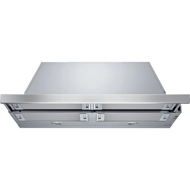 This Bosch 500 Series sleek integrated pull-out hood allows you to close the hood when not in use, providing a flush-look with cabinetry. This hood comes with a 500 CFM integrated blower and a convertible design so you can purchase a recirculation kit if needed. It has a 3-speed slider control, 2 halogen lights and dishwasher safe aluminum mesh filters. Backed by a 1-year limited warranty on parts and labour.