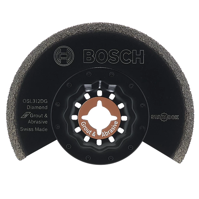 Use the Bosch grout blade for all remodeling projects. The diamond-coated blade offers a lasting performance. A segmented design on this 3.5 in W grout blade also removes grout between tiles. Its three-dimensional blades transfer high torque and minimize vibrations. This oscillating grout blade fits on the Starlock interface and Bosch OIS drills.