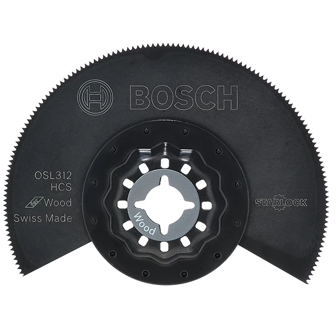 Take on home improvement projects with the Bosch segmented saw blade. Its high carbon steel construction offers durable performance. This Bosch oscillating tool blade delivers flush or straight cuts on wood. The three-dimensional style reduces vibrations and transfers high torque for smooth operation. Use this wood-cutting blade with Starlock interface or Bosch OIS tools.