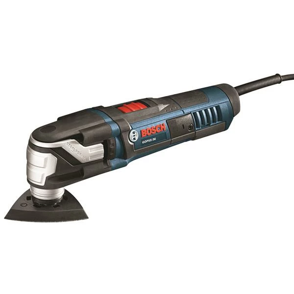 The Bosch StarlockMax(R) Oscillating Multi-Tool Kit supplies a tool that features the Starlock(R) next-generation 3D tool-accessory interface. This interface provides best-in-class accessory grip, generates extreme force transmission produced by the 5.5 Amp motor. The Starlock(R) interface is a cupped 3D tool-accessory connection that delivers greater torque transfer. This tool delivers a top speed of up to 20,000 oscillations per minute, and the tool provides a wide 3.6° oscillating arc. No-touch blade-change system makes it easy to attach, remove or reposition blades. A variable-speed dial allows the user to set the optimal speed. Constant Response circuitry maintains the desired speed under load. Reinforced gearing for more durability & less vibration. Under 4 pounds, this tool delivers an unsurpassed power-to-weight ratio. Provides exceptional versatility, compatible with all Starlock(R) and StarlockPlus(R) accessories in addition to the industrial-grade StarlockMax(R) accessories.