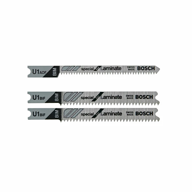 Bosch U-Shank Jigsaw Blade Set for Laminate Flooring – Assorted Sizes – Bi-Metal – 3-Pack